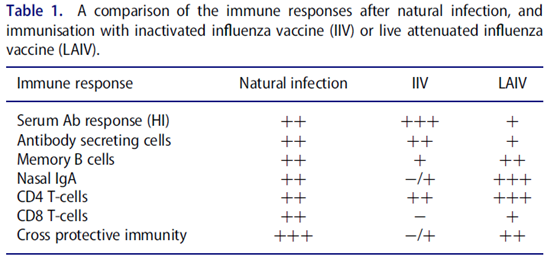 來源K. G.-I. MOHN et al., Immune responses after live attenuated influenza vaccination. Human Vaccines & Immunotherapeutics, 2018; 14:3, 571-578. PMID:28933664.